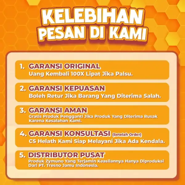 - MADU ZYMUNO tersertifikasi lolos uji BPOM & Halal MUI (dijamin aman 100% untuk dikonsumsi)